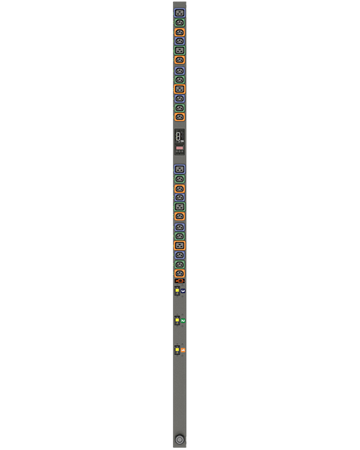 Switched Unit Level Monitored Rack PDU VP5N30A0 is a 30A, 120/208V WYE 0U vertical with input power monitoring and outlet level switching. It has 18 locking IEC C13 and 6 locking IEC C19 receptacles and a NEMA L21-30P providing 8.6kW of power capacity. A Switched rPDU allows you to turn off outlets to avoid accidental overloads and remotely power cycle equipment to reboot unresponsive equipment. The unit comes equipped with an environmental sensor port and dual ethernet ports.